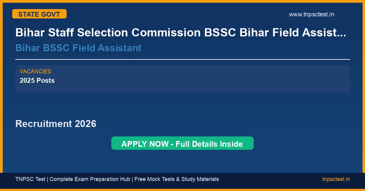 Bihar BSSC Field Assistant Recruitment 2026 – 201 Vacancies | Apply Online