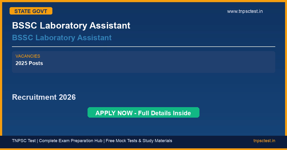 BSSC Laboratory Assistant has released an official recruitment notification for the post of BSSC Laboratory Assistant . A total of Bihar SSC Laboratory Assistant Recruitment 2025 : Vacancy Details Total : 143 Post vacancies have been announced for this state government recruitment 2026. Read below for complete details on eligibility criteria, application fee, selection process, salary, and how to apply for this BSSC Laboratory Assistant recruitment.