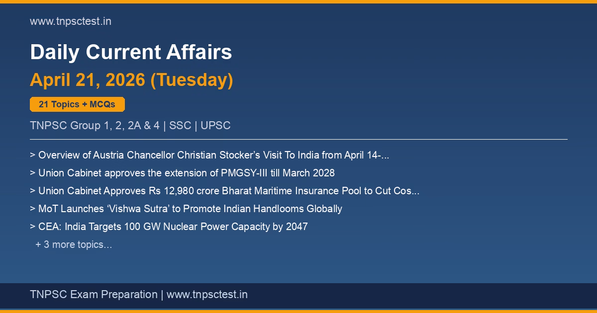 Welcome to today’s TNPSC Daily Current Affairs for April 21, 2026.