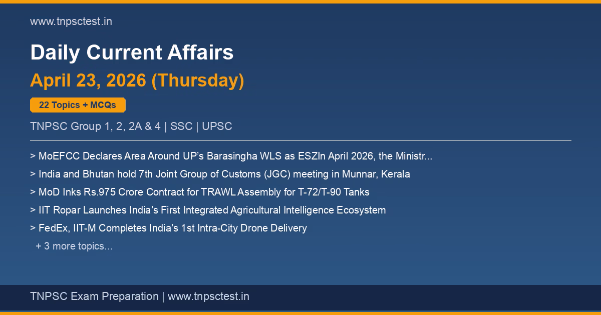Welcome to today’s TNPSC Daily Current Affairs for April 23, 2026.