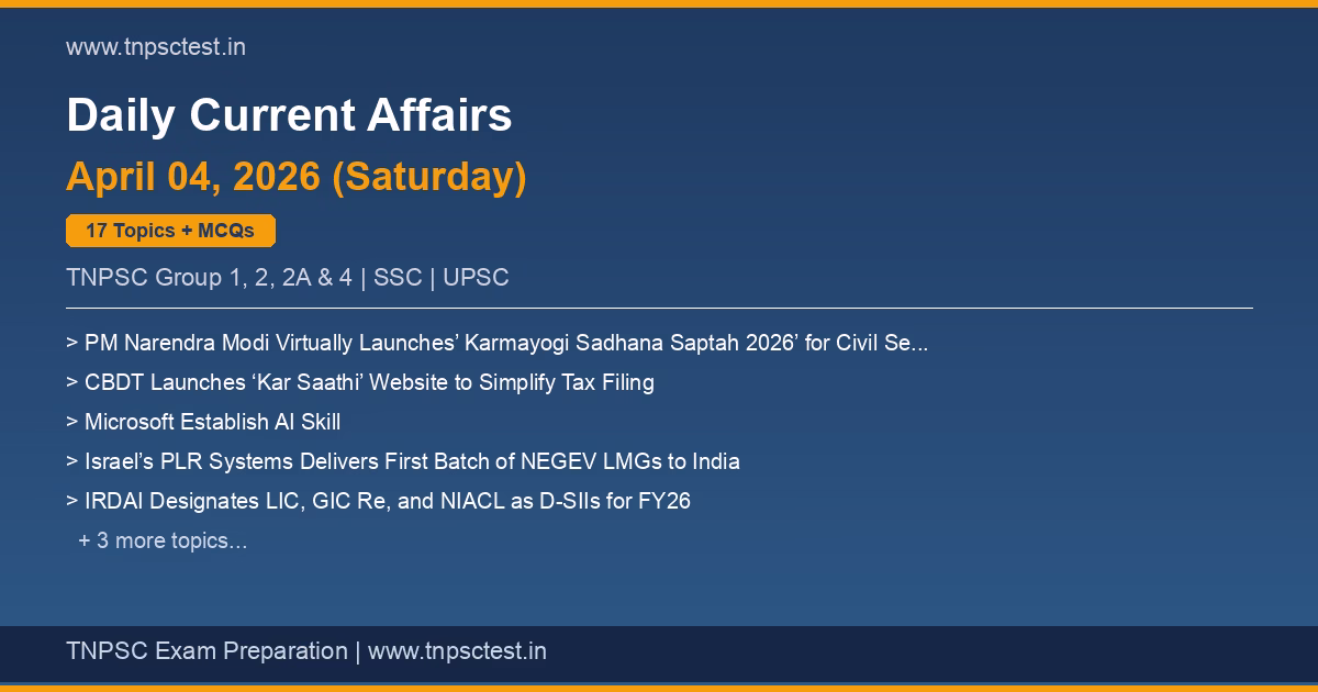 Welcome to today’s TNPSC Daily Current Affairs for April 04, 2026.