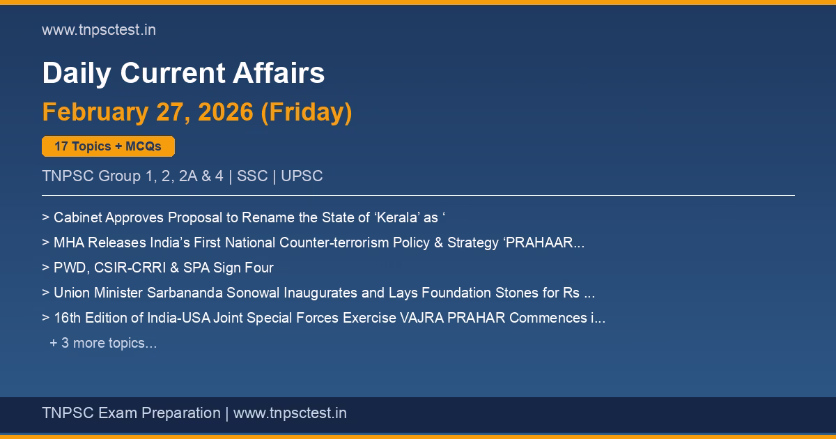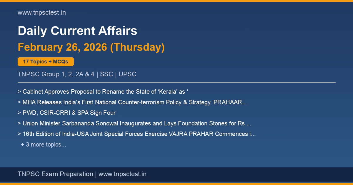 Daily Current Affairs – February 26, 2026 | TNPSC Exam Preparation