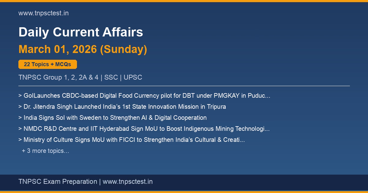 Welcome to today’s TNPSC Daily Current Affairs for February 28, 2026.