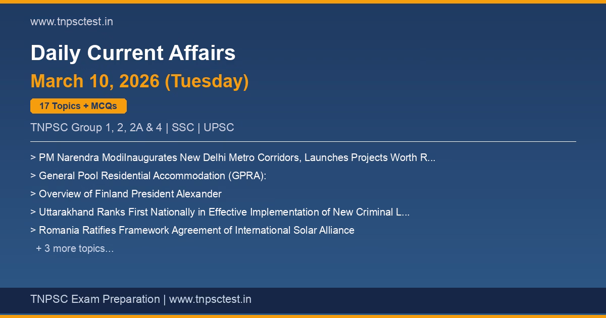 Welcome to today’s TNPSC Daily Current Affairs for March 10, 2026.