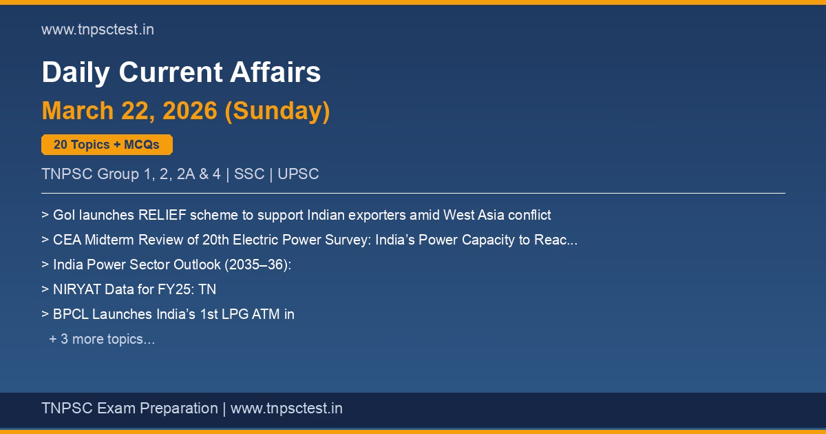 Welcome to today’s TNPSC Daily Current Affairs for March 22, 2026.