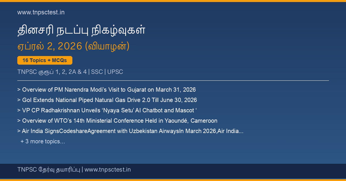 ஏப்ரல் 2, 2026 TNPSC தேர்வுக்கான தினசரி நடப்பு நிகழ்வுகள் தொகுப்பு.