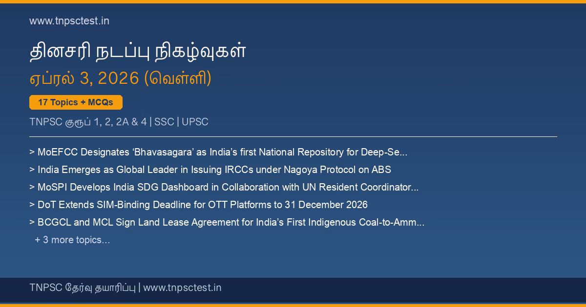 தினசரி நடப்பு நிகழ்வுகள் – ஏப்ரல் 3, 2026 | TNPSC தேர்வு தயாரிப்பு
