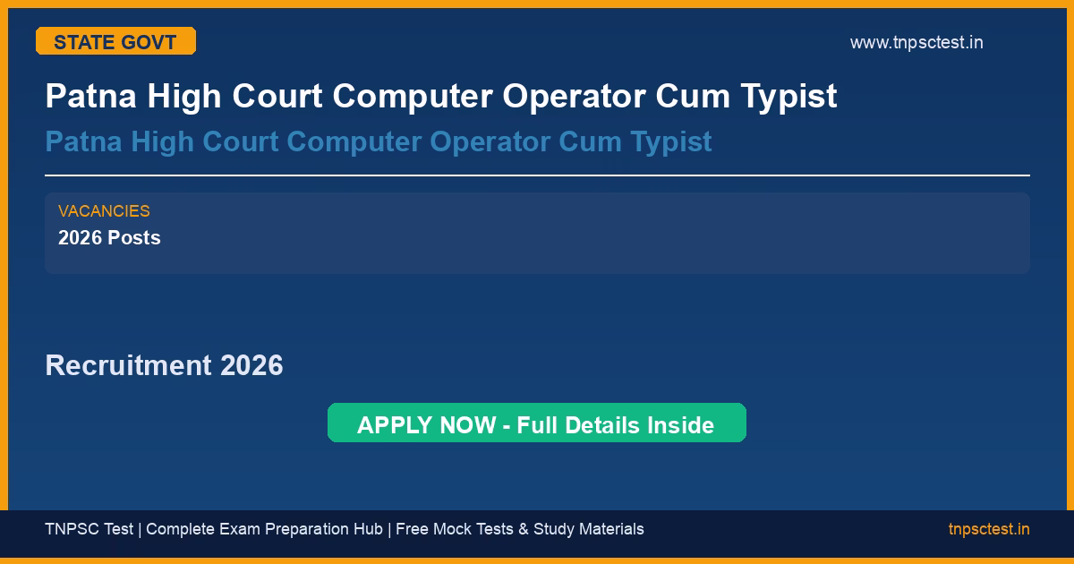 Patna High Court Computer Operator Cum Typist has released an official recruitment notification for the post of Patna High Court Computer Operator Cum Typist. A total of Patna High Court Computer Operator Cum Typist Recruitment 2026: Vacancy Details Total : 48 Post vacancies have been announced for this state government recruitment 2026. Read below for complete details on eligibility criteria, application fee, selection process, salary, and how to apply for this Patna High Court Computer Operator Cum Typist recruitment.