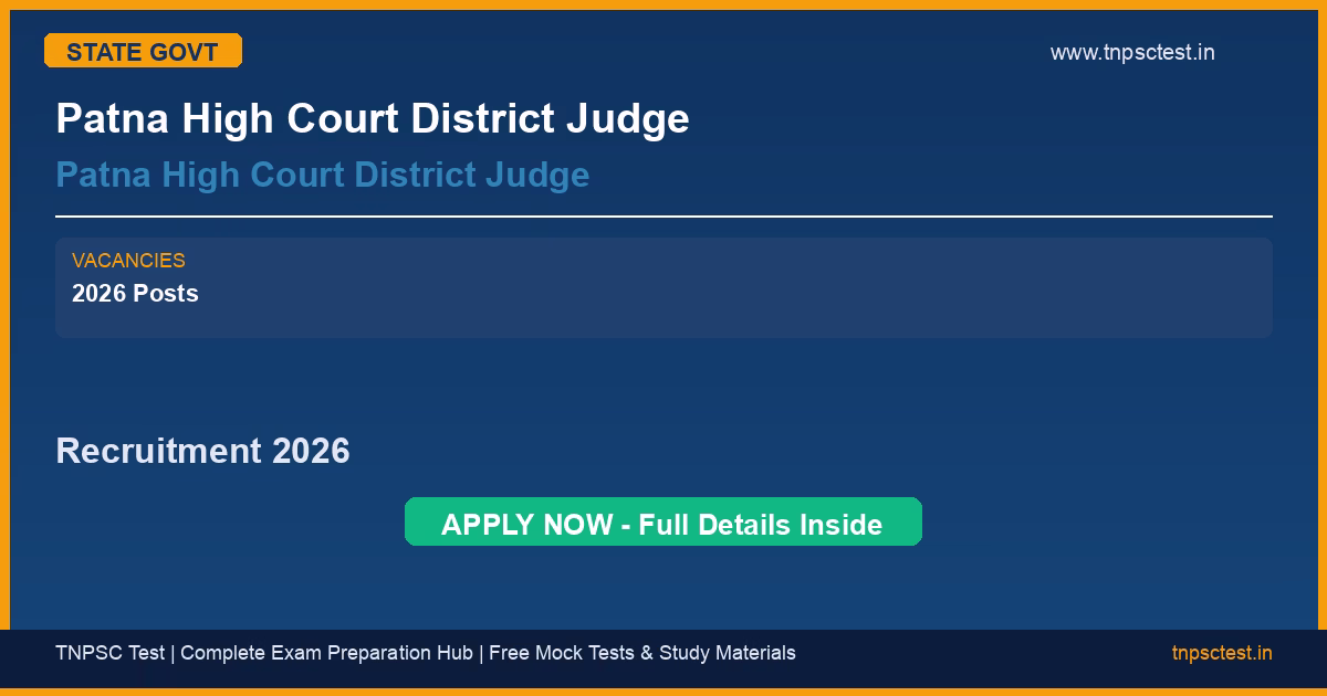 Patna High Court District Judge has released an official recruitment notification for the post of Patna High Court District Judge. A total of Patna High Court District Judge Recruitment 2026: Vacancy Details Total : 08 Post vacancies have been announced for this state government recruitment 2026. Read below for complete details on eligibility criteria, application fee, selection process, salary, and how to apply for this Patna High Court District Judge recruitment.