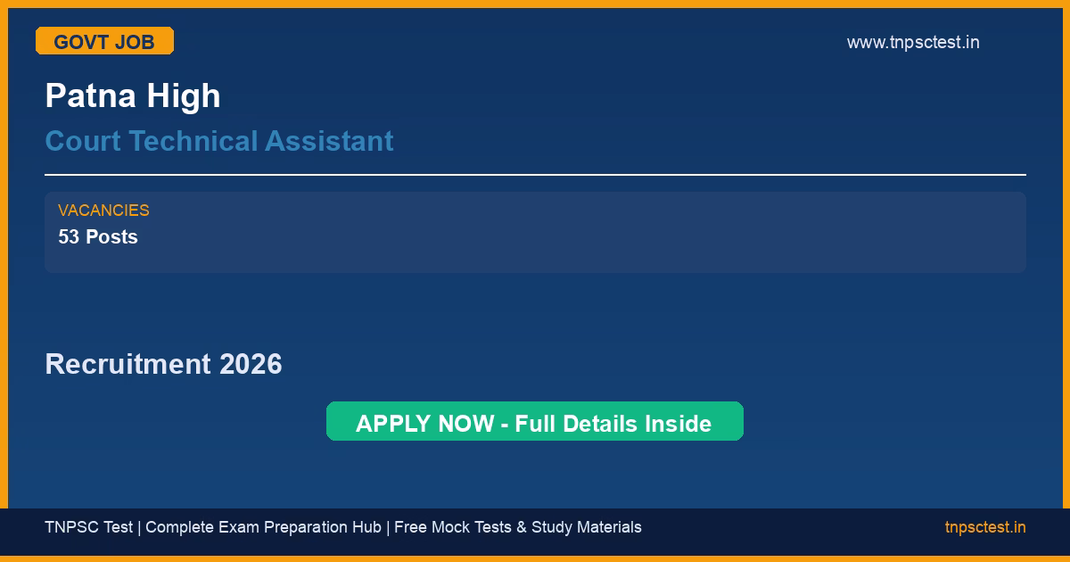 👥 Total Vacancies: Patna High Court Technical Assistant Recruitment 2026: Vacancy Details Total : 53 Post
