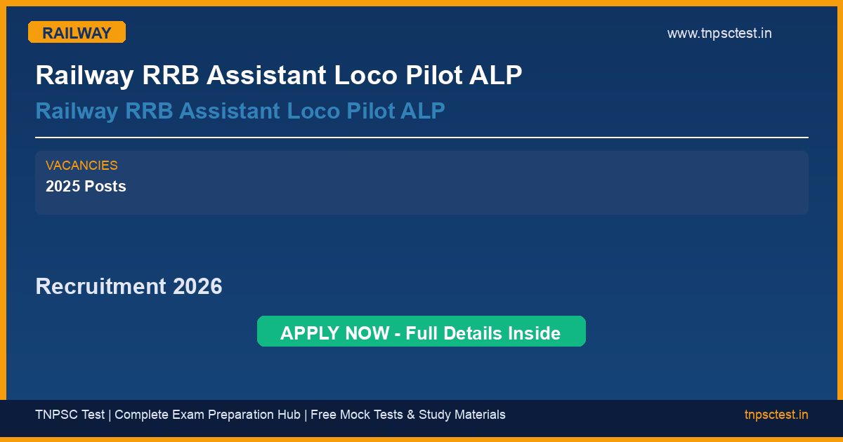 Railway RRB Assistant Loco Pilot ALP Recruitment 2026 – 2025 Vacancies | Apply Online