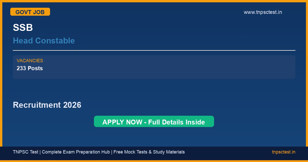 SSB Head Constable – 233 Posts Recruitment 2026 – 233 Vacancies | Apply Online