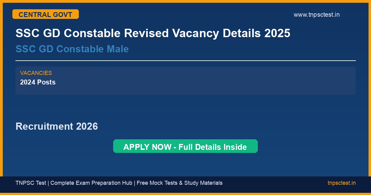 SSC GD Constable Revised Vacancy Details 2025 has released an official recruitment notification for the post of SSC GD Constable Male. A total of SSC GD Constable Notification 2024 : Vacancy Details Total : 53690 Post vacancies have been announced for this central government recruitment 2026. Read below for complete details on eligibility criteria, application fee, selection process, salary, and how to apply for this SSC GD Constable Revised Vacancy Details 2025 recruitment.