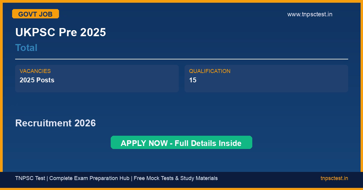 UKPSC Pre 2025 has released an official recruitment notification for the post of Total. A total of UKPSC Pre Recruitment 2025: Vacancy Details Total 123 Post vacancies have been announced for this government recruitment 2026. Candidates who have completed 15 from a recognized university or institution are eligible to apply. Read below for complete details on eligibility criteria, application fee, selection process, salary, and how to apply for this UKPSC Pre 2025 recruitment.