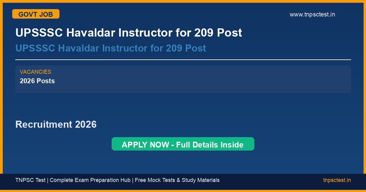 UPSSSC Havaldar Instructor for 209 Post Recruitment 2026 – 2026 Vacancies | Apply Online